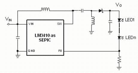 SEPIC轉(zhuǎn)換器擁有連續(xù)輸入電流的優(yōu)點,這個連續(xù)輸入電流是由輸入電感和正輸出電壓產(chǎn)生的。像boost和單電感buck-boost,它們需要一個輸出電容來維持一個平滑LED電流。另外一個SEPIC轉(zhuǎn)換器的優(yōu)點是幾乎任何一個低端調(diào)節(jié)器或者控制器都可以被設(shè)置成為一個毋需反偏或測平移動電路的SEPIC。