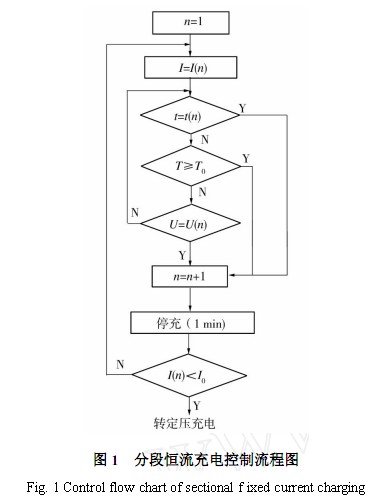 溫度參數控制 : 設定某段恒流充電至可接受電流極限時的電池溫度最高值 ,根據溫度傳感器檢測的電池溫度來控制充電裝置。當外界環境溫度較低 、設置的電池最高溫度較高時 ,采取控制溫升法 ,當電池的溫升達到設定值時 ,溫控器使充電裝置停止充電 ,直到溫度下降至適當值時 ,自動進入下一階段恒流充電 。