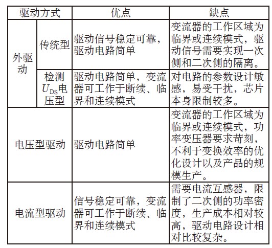 外驅動一般是指同步整流管的驅動信號獨立于主電路,由外部電路產生。傳統的外驅動方式是根據一次側控制芯片的信號,通過隔離變壓器等給二次側的同步整流管(SR)提供驅動信號;另一種則通過比較電路,檢測SR的漏源極電壓(U DS),產生驅動信號。目前市場上的智能同步整流驅動芯片就是采用這種控制策略。