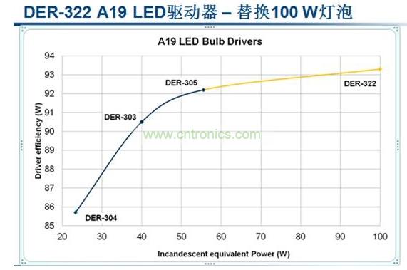 現在100 W白熾燈替換LED一般都需要采用PAR38,采用A19規格的LED尚未出現?,F在PI已經推出業界首個針對100 W A19白熾燈泡替換應用的LED驅動器設計DER-322,該驅動器可為100 W A19白熾燈泡的LED替換燈提供所需的功率,這是業界首個此類設計。PI大功率LED驅動設計的推出,對于替換100W白熾燈大功率LED快速進入市場有很大的推動的作用。