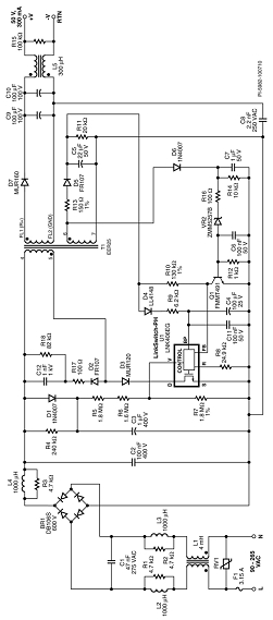 此設計的主要目標是超薄和高效率。這樣有助于使驅動器板適應T8燈管內LED負載板后的空間,并將工作時的溫升保持在可接受的范圍以內。為此,必須認真選擇元件和安裝方法,但這相比于方案的更換更加簡單,因為初級側調節的LinkSwitch-PH設計所需的元件數量很少。