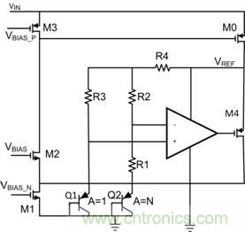 圖5:所推薦帶隙電壓參考內(nèi)核的簡(jiǎn)化方框圖