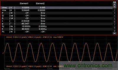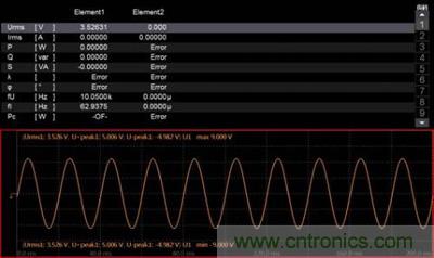 事實(shí)卻是,這兩幅圖均是PA5000功率分析儀在常規(guī)模式2MHz采樣頻率下,測(cè)量10.05kHz信號(hào)時(shí)的波形,如圖3和圖4所示,測(cè)量結(jié)果中波形的Urms及頻率也均相等。為什么波形會(huì)體現(xiàn)出如此大才差異呢?
