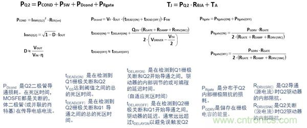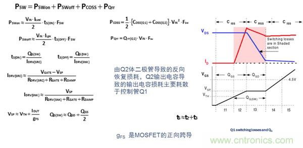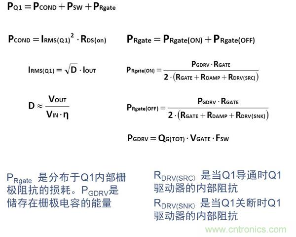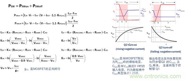 對于高頻應用(>MHz),控制管Q1的選用應針對降低開關損耗進行優化。Q1損耗的計算公式如下: