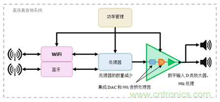 處理器執行各種音頻處理功能,如解碼和信號均衡,同時也處理Wi-Fi和/或藍牙通信軟件堆棧。過去,CD品質的采樣頻率可能已足夠。但是今天的高保真音頻系統對信號鏈中的處理器提出了其它要求,因為高保真音質要求在24位音樂信號流中提供48kHz至192kHz范圍內的采樣率。