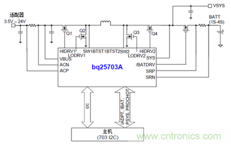由于C型USB端口是通用的,且具有很高的功率傳輸能力,是適合此類應用的理想選擇。為了兼容具有不同電壓和功率電平的電源,諸如無人機這樣的多元電池組系統很有必要使用降壓升壓充電器。在飛行間隔期間,用戶能夠快速而安全地對電池進行充電也是至關重要的。bq25703A和bq25700A支持高達6.35A的充電電流,并具有廣泛的保護功能,包括有助于從各種適配器獲得最大功率的輸入電流優化(ICO)。圖1提供了bq25703A應用圖中的附加信息。