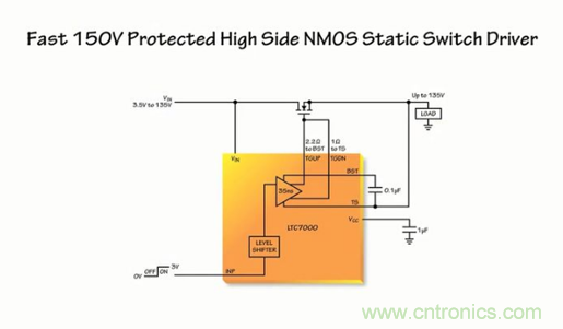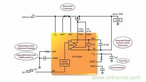 由此可見,作為一款靈活和堅固的器件,可使汽車和工業(yè)制造商提高其系統(tǒng)的性能和可靠性。LTC7000 所具備的高達 135V 的電壓范圍、內(nèi)置的保護功能、強大的驅(qū)動器、快速接通和關斷時間能力,使得制造商能夠開發(fā)出為客戶增添附加值和可靠性的系統(tǒng)。因而它主要運用于靜態(tài)開關驅(qū)動器、負載和電源開關驅(qū)動器、電子閥驅(qū)動器以及高頻高壓柵極驅(qū)動器。