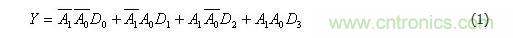 由表2可知,具有兩位地址輸入A0、A1的4選1數據選擇器,當使能控制端=0時,輸出與輸入之間的邏輯關系式為
