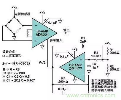 圖11.將運算放大器緩沖器接成有源濾波器驅動儀表放大器的參考輸入引腳