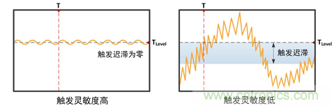 圖10 靈敏度高低對信號觸發(fā)的影響