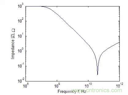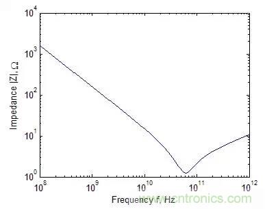 一個(gè)典型的1pF電容阻抗絕對(duì)值與頻率的關(guān)系