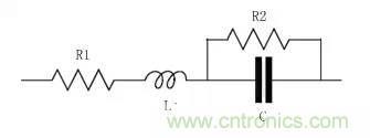 片狀電容在射頻電路中的應(yīng)用十分廣泛,它可以用于濾波器調(diào)頻、匹配網(wǎng)絡(luò)、晶體管的偏置等很多電路中,因此很有必要了解它們的高頻特性。電容的高頻等效電路如圖所示,其中L為引線的寄生電感;描述引線導(dǎo)體損耗用一個(gè)串聯(lián)的等效電阻R1;描述介質(zhì)損耗用一個(gè)并聯(lián)的電阻R2。