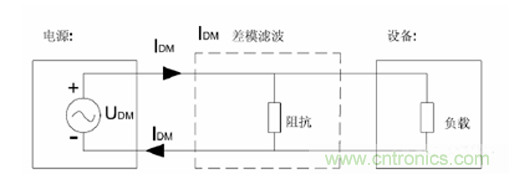 由于差模電容是接在L和N線兩線之間,那么它和后面的負載實際上是并聯關系。又由于電容對低頻次的信號有很強的阻礙作用,對高頻次的信號有很強的導通作用,及低阻抗作用。當50Hz-60Hz低頻交流信號流過電容兩端的時候,由于電容的阻抗表現極其大,所以電容不起任何作用,等于沒有這個電容。當差模信號通過的時候(差模信號一般是高頻無用信號),那么電容表現為通路,阻抗很小,在高頻信號下,則電容相當于將后面負載短路,那么后面負載就不會受高頻信號的干擾。如圖差模電容工作原理所以。以上是運用張老師第一大定律源、回路、阻抗來分析差模電容特性。