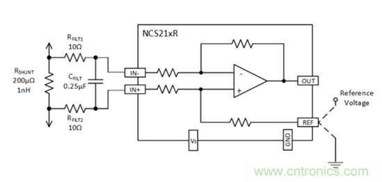 圖1:輸入濾波補償小于1 m?的分流電阻的并聯電感,以及任何應用中的高頻噪聲。