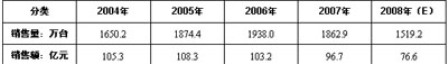 - 預計2008年銷售量將同比下降18.5%,銷售收入同比下降20.8%