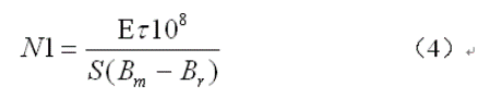 (4)式就是計(jì)算反激式開關(guān)電源變壓器初級線圈N1繞組匝數(shù)的公式。式中,N1為變壓器初級線圈N1繞組的最少匝數(shù),S為變壓器鐵心的導(dǎo)磁面積,單位:平方厘米;Bm為變壓器鐵心的最大磁感應(yīng)強(qiáng)度,單位:高斯;Br為變壓器鐵心的剩余磁感應(yīng)強(qiáng)度,單位:高斯),Br一般簡稱剩磁;τ = Ton,為控制開關(guān)的接通時(shí)間,簡稱脈沖寬度,或電源開關(guān)管導(dǎo)通時(shí)間的寬度,單位:秒;E為工作電壓,單位為伏。式中的指數(shù)是統(tǒng)一單位用的,選用不同單位制,指數(shù)的值也不一樣,這里選用CGS單位制,即:長度為厘米(cm),磁感應(yīng)強(qiáng)度為高斯(Gs),磁通單位為麥克斯韋(Mx)。