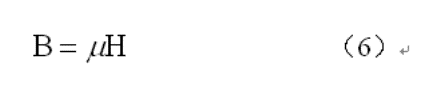 由圖3中可以看出,對應(yīng)不同的磁場強(qiáng)度,即不同的磁化電流,磁通變化量也是不一樣的,并且磁通變化量與磁場強(qiáng)度不是線性關(guān)系。圖4是磁感應(yīng)強(qiáng)度與磁場強(qiáng)度相互變化的函數(shù)曲線圖。圖4中,曲線B是磁感應(yīng)強(qiáng)度與磁場強(qiáng)度對應(yīng)變化的曲線;曲線 為導(dǎo)磁率與磁場強(qiáng)度對應(yīng)變化的曲線。其中: