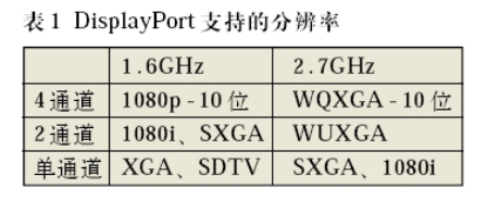 DisplayPort是一個高帶寬、雙向顯示互連,可以實現(xiàn)內(nèi)置和外置顯示連接的通用新一代接口標準。憑借可擴展SerDes技術(shù)及改變通道數(shù)和速度,顯示系統(tǒng)可采用DisplayPort接口標準來支持各種分辨率,使其成為數(shù)字電視的理想選擇。表1顯示了一些由不同速度和通道數(shù)支持的DisplayPort的分辨率實例。