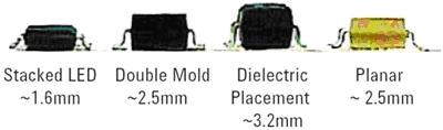 以前把兩個以上的光學耦合器集成到一個DIP/表面封裝的澆鑄封裝中是一個很大的挑戰。主要問題來自已有的封裝工藝及LED方塊的正面發光特點。