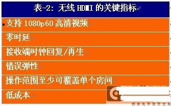 無線HDMI的目標是提供與有線HDMI相同的用戶體驗。由此我們在表-2中列出無線HDMI的幾項關鍵指標: