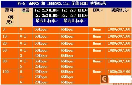 最新的超低時延H.264高清視頻編解碼芯片WW602和WW108支持信道自適應傳輸速率,可變速率和可變分辨率.這些先進的特性使得無線HDMI可以實時調整碼率以匹配各種不同工況下的信道帶寬,也可以將高清內容變換以適應那些僅能處理較低分辯率和較低碼率的設備.見表-5.