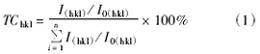 在XRD測量中,以晶面(hkl)的織構(gòu)系數(shù)TC(texturecoefficient)來表征晶面擇優(yōu)程度。