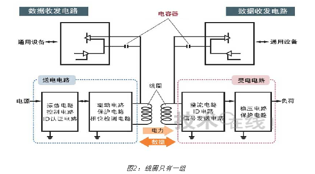 • 一組線圈同時(shí)傳輸電力和數(shù)據(jù)