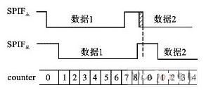 通過對從器件的波形分析發(fā)現(xiàn),counter=8后的第一個(gè)時(shí)鐘周期,數(shù)據(jù)最后一位的傳輸已經(jīng)完成。在數(shù)據(jù)已經(jīng)收/發(fā)完畢的情況下,counter=8狀態(tài)的長短對數(shù)據(jù)的正確性沒有影響,因此可以縮短counter=8的狀態(tài),以避免前一個(gè)SPIF和后一個(gè)SPIF相重疊。這樣,從硬件上避免了這一階段的溢出錯(cuò)誤。