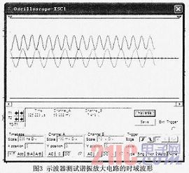 在小信號諧振放大中,電路的輸入信號中除了所需要的信號外還有不需要的信號,它們的頻譜往往不同,所以用選頻的方法,選取需要的頻率分量,抑制不需要的頻率分量。另外,其中有用信號的幅度往往也很小,處理這種信號必須具有選頻和放大雙重功能。小信號諧振放大器電路中晶體管集電極負載是LC并聯諧振電路,其阻抗是隨頻率而變化的,回路諧振頻率f0上的阻抗為純電阻并且是最大的,因此諧振放大器在負載回路的諧振頻率上具有最大的電壓放大增益,稍離開此諧振中心頻率,電壓增益就會迅速減小。在分析中采用仿真軟件來測試諧振放大電路的時域的輸入輸出波形。分析測試電路如圖2所示。