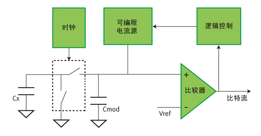 時鐘:本文提到的電容式感應(yīng)系統(tǒng)是基于開關(guān)電容原理的。相反,物理上的傳感器電容通過在連續(xù)周期內(nèi)給傳感器電容充放電模擬成了電阻。模擬電阻和傳感器電容值成正比,可以用電流源和一個數(shù)模轉(zhuǎn)換器來計算傳感器電容實際值。