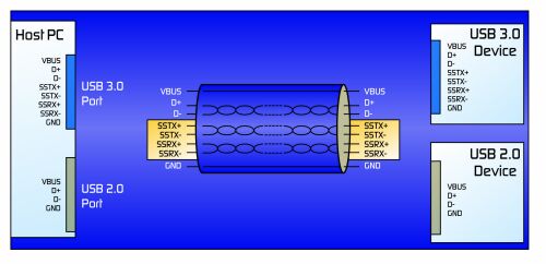 現(xiàn)有的USB 2.0協(xié)議允許高達(dá)480Mbps的數(shù)據(jù)傳輸速率,并支持即插即用、熱插拔安裝和運行。與之相比,USB 3.0規(guī)范允許高達(dá)5Gbps的數(shù)據(jù)傳輸速率,并向后支持較低速的USB 2.0規(guī)范。