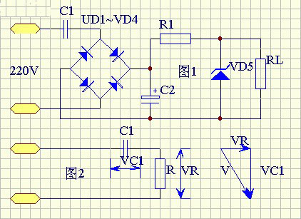 C1取值大小應根據負載電流來選擇,比如負載電路需要9V工作電壓,負載平均電流為75毫安,由于Id=0.62C1,可以算得C1=1.2uF。考慮到穩壓管VD5的的損耗,C1可以取1.5uF,此時電源實際提供的電流為Id=93毫安。