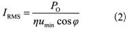 設(shè)輸入有效值電流為IRMS,整流橋額定的有效值電流為IBR,應(yīng)當(dāng)使IBR≥2IRMS。計算IRMS的公式如下: