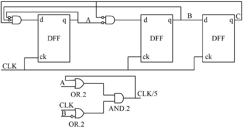 圖1 5 分頻電路邏輯結(jié)構(gòu)