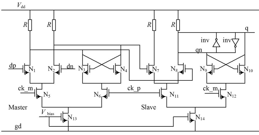 圖2 CML 鎖存器構(gòu)成的主從式觸發(fā)器電路