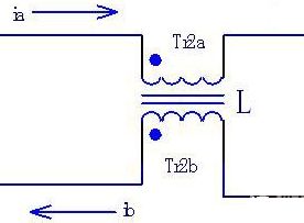 圖1所示的是共模電感的濾波電路,Tr2a和Tr2b就是共模電感L的兩個線圈。這兩個線圈繞在同一磁芯上,匝數和相位都相同。這樣,當電路中流過電流ia和ib的大小相同、方向相反時,電流在同相位繞制的電感線圈中產生反向的磁場而相互抵消,磁芯中沒有交變的磁通量產生。