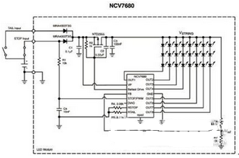 圖4:NCV7680剎車燈應(yīng)用框圖