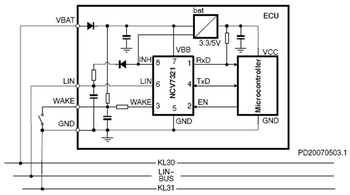 圖2:基于安森美半導(dǎo)體NCV7321的典型LIN電路