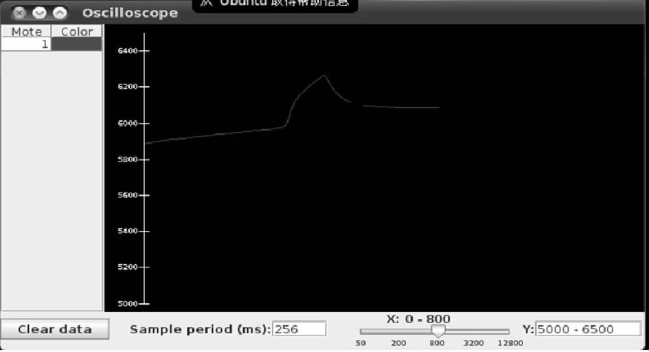 TinyOS是UC Berkeley開發(fā)的開放源代碼操作系統(tǒng),專為嵌入式無線傳感器設(shè)計,操作系統(tǒng)基于構(gòu)件的架構(gòu)使得快速更新成為可能,而這又減小了受傳感器網(wǎng)絡(luò)存儲器限制的代碼長度。TinyOS的構(gòu)件包括網(wǎng)絡(luò)協(xié)議、分布式服務(wù)器、傳感器驅(qū)動及數(shù)據(jù)識別工具。其良好的電源管理源于事件驅(qū)動執(zhí)行模型,該模型也允許時序安排具有靈活性。因此對于整個無線傳感器網(wǎng)絡(luò)的驗證采用TinyOS操作系統(tǒng),設(shè)計為兩個節(jié)點,節(jié)點A負責(zé)采集溫度濕度數(shù)據(jù),然后將采集到的數(shù)據(jù)發(fā)送到另一個節(jié)點B,節(jié)點B接收到數(shù)據(jù)后,通過USB將數(shù)據(jù)傳輸?shù)絺€人電腦,并將該數(shù)據(jù)通過圖表顯示,如圖10所示。