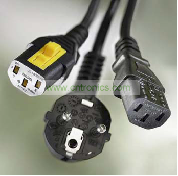 標準產品范圍還包括成功推出的電源線V型鎖固定解決方案。該系統可以防止電源線從電源插座上意外拔出。各種款式的接頭、電源輸入模塊以及多種國家規格的電源電纜都可供選擇。