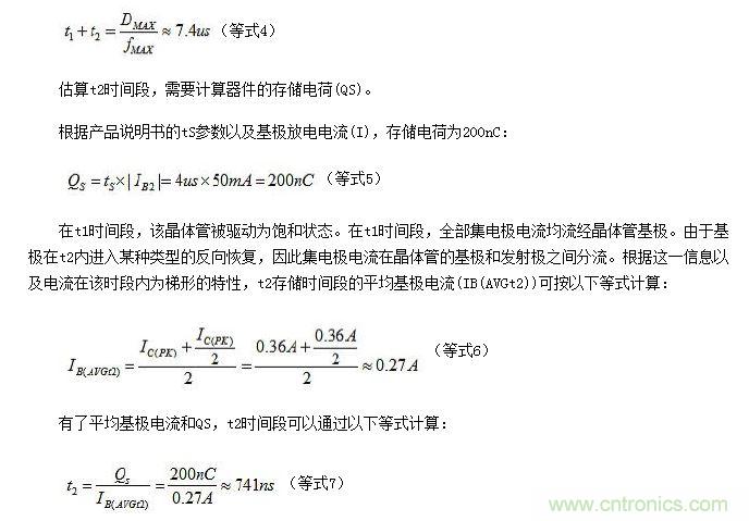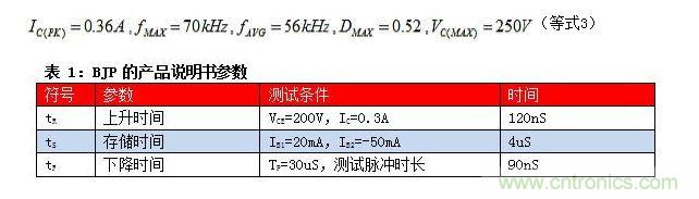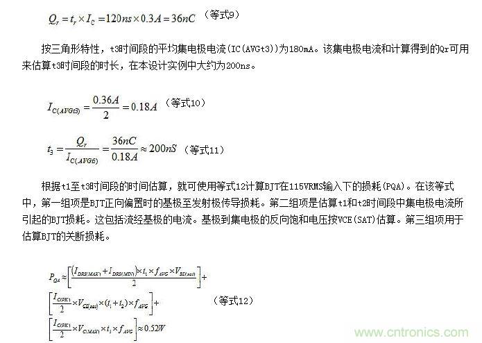 集電極反向恢復電荷(Qr)數量可用來估算開關損耗時間段t3。根據BJT產品說明書,參數Qr的計算結果為36nC。