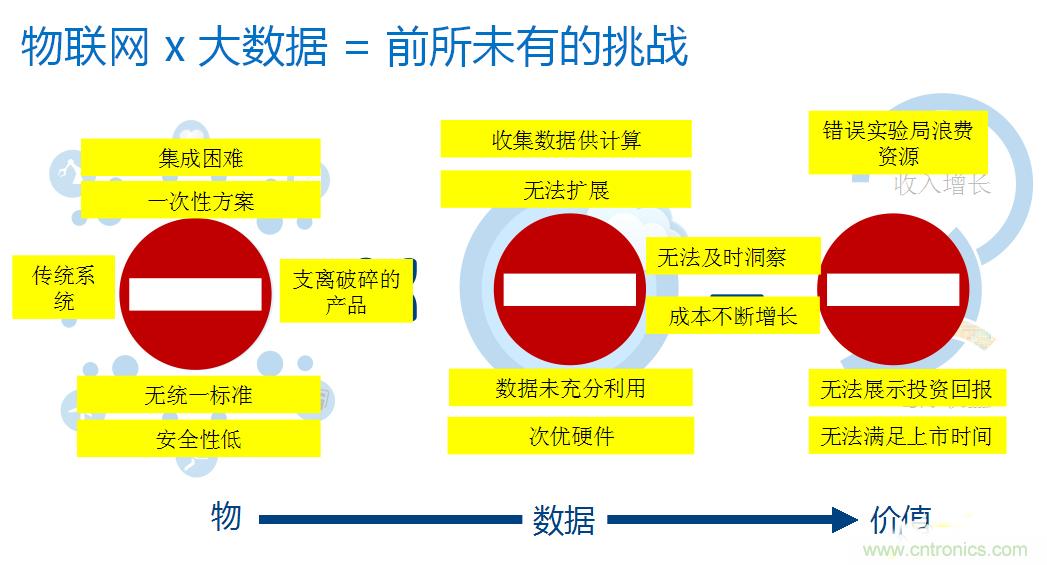 大數據將成為物聯網的核心已毋庸置疑,而物聯網與大數據的結合,帶來的不僅僅是巨大的價值,還有前所未有的挑戰,如下圖所示。