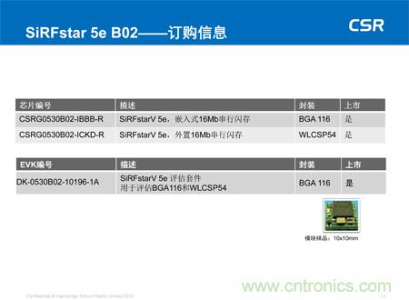 【導讀】幾日前,小編有幸參加了CSR公司在深圳舉辦的定位開發者大會。在會議上,CSR公司定位產品事業部高級總監Dave Borison 以及CSR大中華區銷售副總裁鄭元更先生詳細的介紹了CSR公司最新的產品SiRFstar 5e B02。全面了解了SiRFstar 5e B02在定位上取得的全新的突破性進展,下面請看詳細內容。