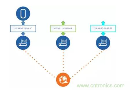 我們可以試想一下,當我們每天搭乘公共交通穿行了整個城市,當我們在商場購物或是和朋友在餐廳聚餐的時候,你的智能手機可以幫助你付費、點單和導航。如果你的智能手機接入到網絡熱點當中進行互聯網訪問的時候,它就可能會在這一系列的過程當中來廣播其MAC地址。我們前面提到了MAC地址在網絡通信當中的唯一性,你又是智能手機的使用者,那么這部智能手機的MAC地址從某一角度來講,就代表了你在無線通信過程當中的身份認證。因此就存在這樣一種可能,一些懷有惡意的人通過一些其他的無線通信設備,可以獲取你的智能手機進行數據交互時的MAC地址并且記錄了MAC地址出現的日期、時間和相關的位置,那么你的行蹤就可以被監控,如下圖所示。