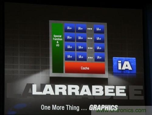 在2007年的IDF上,Intel正式揭開獨(dú)立顯卡——代號“Larrabee”的神秘面紗,Larrabee隸屬于其萬億次運(yùn)算項(xiàng)目(Tera-scale),也將是Intel的第一款實(shí)用級萬億次運(yùn)算處理器,其處理能力“大大超過”一萬億次浮點(diǎn)每秒;根據(jù)Intel首席架構(gòu)師EdDavis的演示文稿,Larrabee基于可編程架構(gòu),主要面向高端通用目的計(jì)算平臺,至少有16個(gè)核心,主頻1.7-2.5GHz,功耗則在150W以上,支持JPEG紋理、物理加速、反鋸齒、增強(qiáng)AI、光線追蹤等特性。