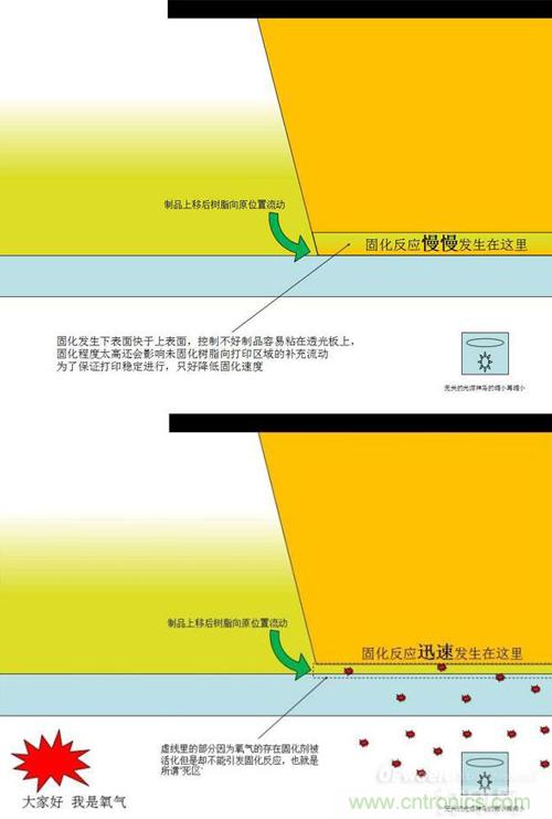 在此前,解決這一問題的方法主要是降低固化速度,在樹脂完全固化之前移動底板,使部分固化的樹脂與透光板脫離接觸,新的低粘度樹脂會補(bǔ)充到原來的位置,然后再開始下一層的固化。但這樣一來,打印速度就無法有效提高了。