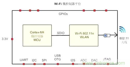 微控制器是家居智能化的關鍵部件。MCU和Wi-Fi是最基本的兩個元素。以某一Wi-Fi微控制器為例,它是內置全功能微控制器的單芯片SoC,支持802.11n Wi-Fi。