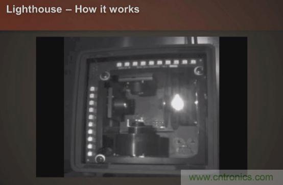 傳統的光學系統是攝像頭式的,攝像頭跟蹤頭顯上標記的馬克點實現跟蹤,Oculus的Constellation系統就使用了攝像頭+紅外主動馬克點的方式;而HTCVive則使用了一套十分巧妙的技術,稱之為Lighthouse,這套技術由Valve開發,可以說是目前體驗最好的VR光學跟蹤方案。