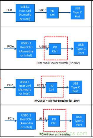 通常意義上的電路保護包括過流保護和過壓保護。USB Type-C的過流保護有四種不同的設計架構。第一種是直接采用集成了功率開關的PD控制器IC,這種方案的集成度較高,性能也最好,但是成本也比較高。第二種成本比較低的是“PD控制器+電流感應電路”的方案,但性能受限。其他兩種“PD控制器+外置功率開關”的方案和 “PD控制器+MOSFET+PTC”的方案成本適中,其中后者是Bourns公司特有的方案,可以實現最佳的性價比,并且在5-20V的電壓范圍內有多種型號供開發者選擇。