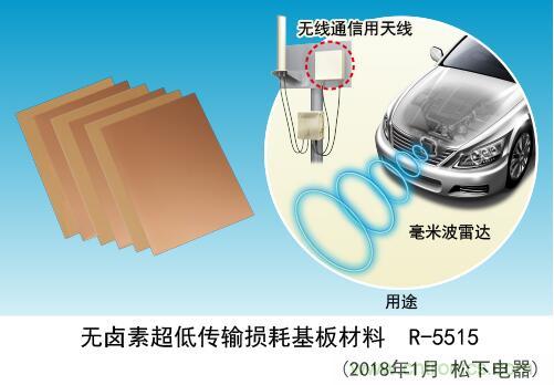 【導(dǎo)讀】 松下電器產(chǎn)業(yè)株式會社汽車電子和機電系統(tǒng)公司開發(fā)出了適用于毫米波段[1] 天線基板的“無鹵素超低傳輸損耗基板材料(型號∶R-5515)”,并計劃于2019年4月開始量產(chǎn)。用熱固性樹脂實現(xiàn)毫米波段中的行業(yè)最高(※1)的低傳輸損耗[2],為天線的高效率化、低損耗化、及降低基板的加工成本做出貢獻(xiàn)。